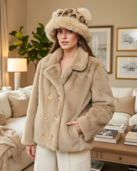 Leopard print black fur jacket