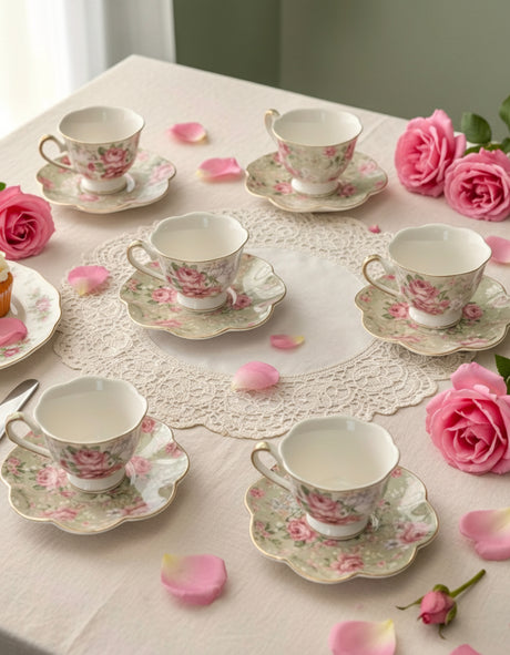 Floral Coffee Cups & Saucers – 6-Piece Set