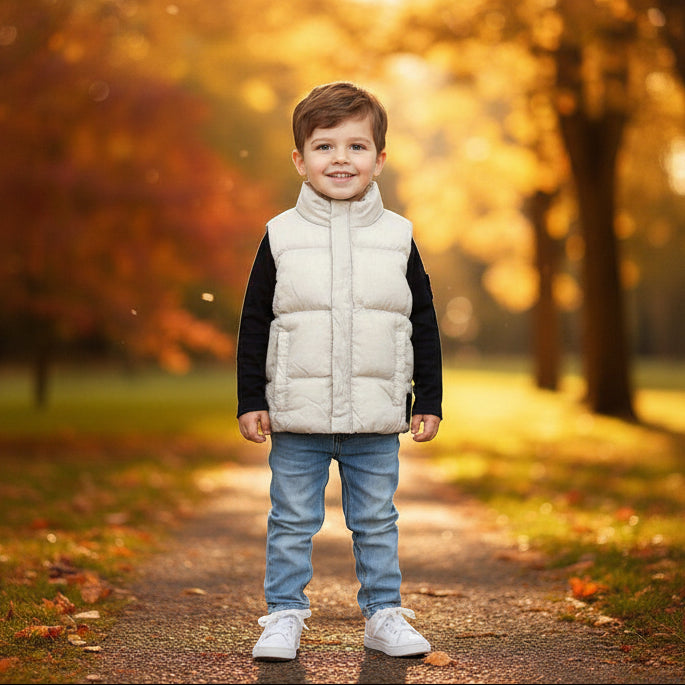 Clean kids puffer vest with lightweight insulation