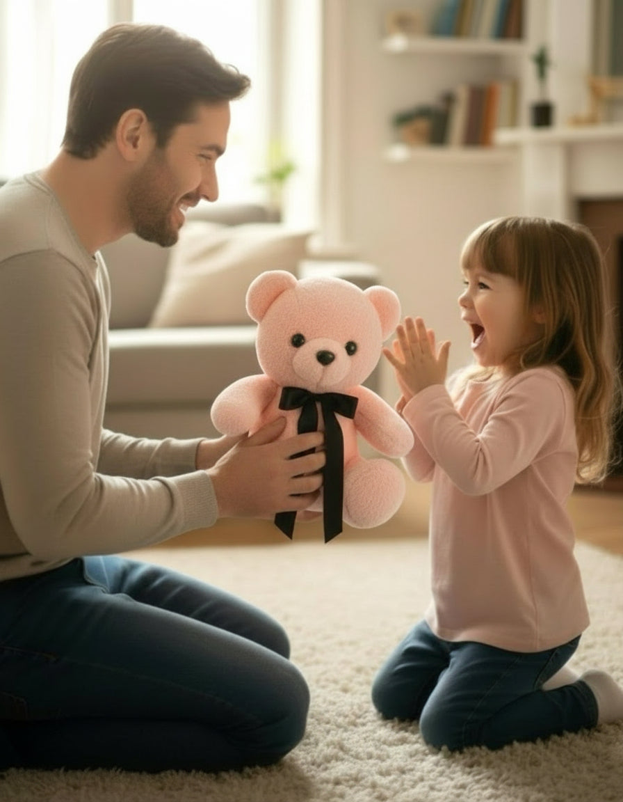 Teddy with hair bow - Gray is backordered and will ship as soon as it is back in stock.