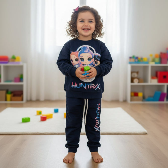 Fun kids sweatshirt and jogger set with character print