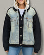 Denim body with soft fleece sleeves and hood for ultimate comfort.